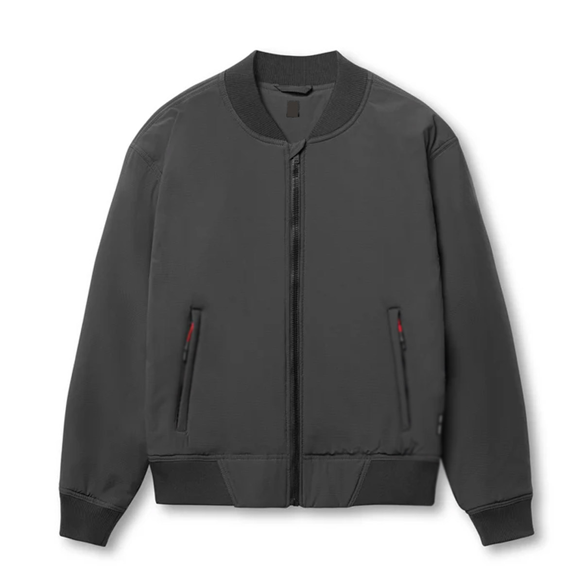 A bomber jacket is a short, waist-length jacket originally designed for military pilots, characterized by its fitted cuffs, hem, and front zipper closure. It typically features a ribbed collar, elastic waistband, and may include multiple pockets for both style and function. Over time, the bomber jacket has become a versatile fashion staple in casual and streetwear wardrobes.