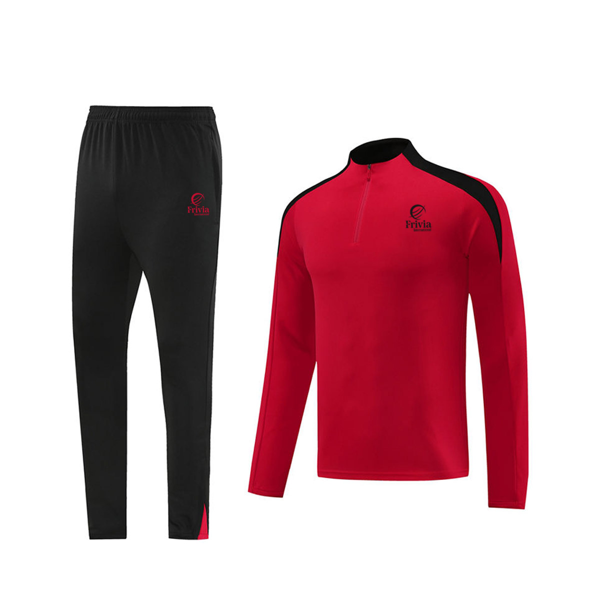 Soccer tracksuits are coordinated athletic outfits consisting of a zip-up jacket and matching pants, designed for comfort during training, travel, and pre-match warm-ups. They are typically made from lightweight, breathable materials such as polyester to ensure flexibility, moisture management, and ease of movement on and off the field. Soccer tracksuits often feature team colors, logos, and sleek athletic fits, making them ideal for players, coaches, and fans who want both performance and a professional appearance.