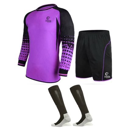 Goalkeeper kits are specialized soccer uniforms designed to provide protection, flexibility, and visibility during matches and training sessions. They typically include a jersey with padded elbows, matching shorts or pants with reinforced areas, and are made from breathable, moisture-wicking fabrics to ensure comfort and durability. Often distinguished by bold colors and unique designs to stand out from other players, goalkeeper kits combine performance features with a professional look tailored to the demands of the position.